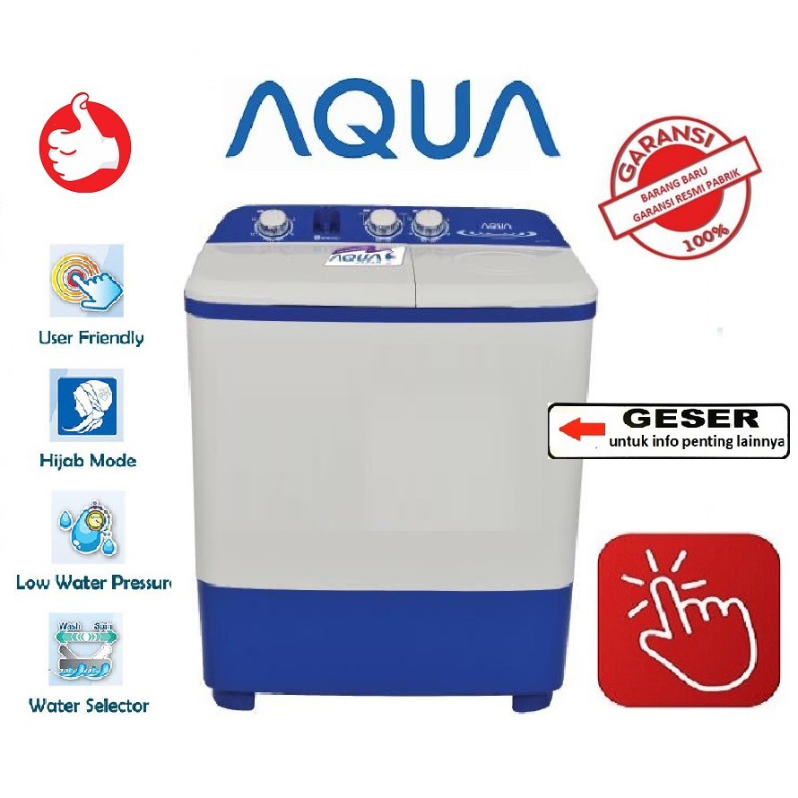 Aqua qw 751xt hijab series mesin cuci twin tub 7 kg merupakan mesin cuci 2 tabung dengan fitur hijab mode air dry spin lid soak function water selector chrome knob dan anti rust plastic body. Mesin cuci ini juga didukung dengan dynamic soak function yang berfungsi untuk memudahkan kotoran untuk lebih cepat hilang serta meningkatkan performa pelembut apabila ditambahkan. Fitur utama semi otomatis qw 751xt. 0 komentar 0 review.