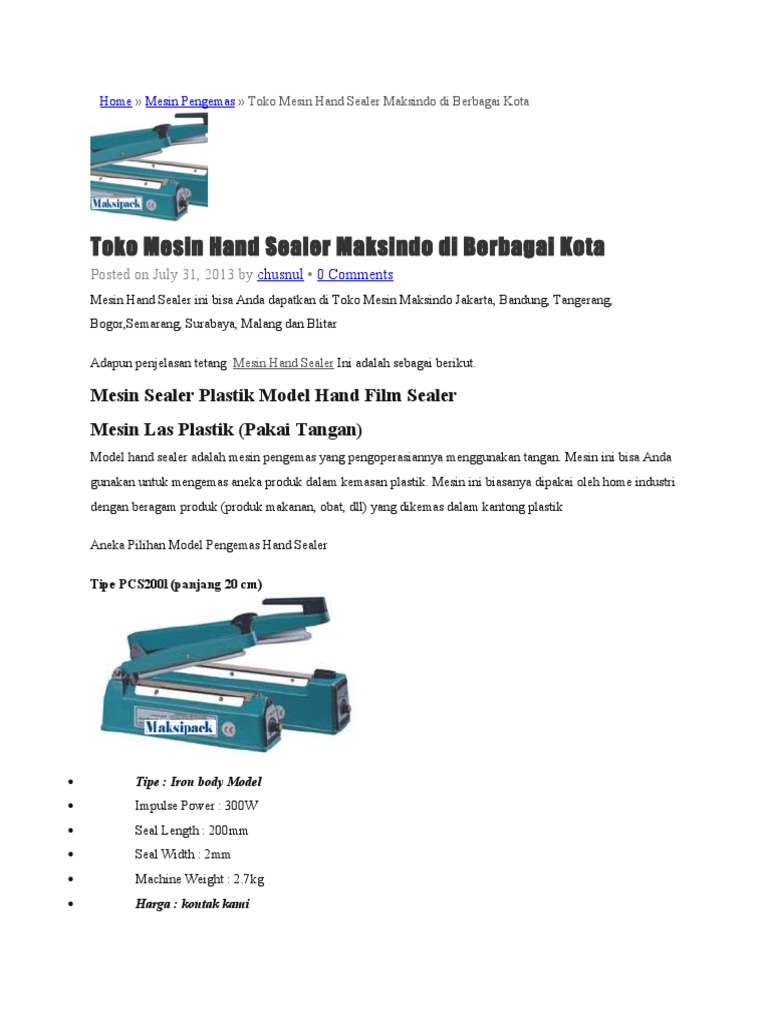 Mesin hand sealer maksindo. Silahkan yang ingin menyimak detail dari mesin hand sealer dengan jenis tipe lainnya yang membahas lebih jelas kegunaan spesifikasi ataupun cara penggunaan anda dapat simak pada cara klik disini. Untuk mesin continuous band sealer model terbaru tersajikan dalam sebuah tipe frb 770 ii hualian. Mesin ini bisa anda gunakan untuk mengemas aneka produk dalam kemasan plastik. Kode nama barang nama dan alamat pengiriman.