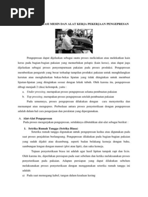 Kelim ini biasanya lebih banyak dipakai untuk menyelesaikan pinggiran kemeja ujung kaki piyama kaki celana bawah rok blus dan lain sebagainya. Kinerja mesin pres diukur dari berbagai factor yang pilihanya tergantung pada kebutuhan industry yang akan menggunakanya dengan penekanan pada tujuan yang berbeda. B gunting pelapis satu rangkap kemudian beri tanda pola. Jenis mesin press manual ini mengandalkan tenaga manusia.