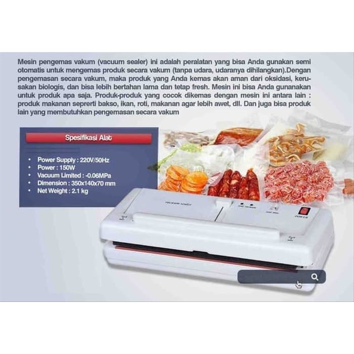 Ac 220 v sealing power w. Shopee menyediakan sarana yang tepat untuk mendukung para penjual online kami dalam berjualan di shopee. Mesin vacuum sealer ini sangat bermanfaat dalam industri kemasan produk makanan karena tanpa proses pengemasan vacuum akan kualitas produk makanan tersebut mulai dari rasa bau dan tekstur. Daftar isijenis jenis mesin vacuum sealerrekomendasi mesin pengemas vacuum1.